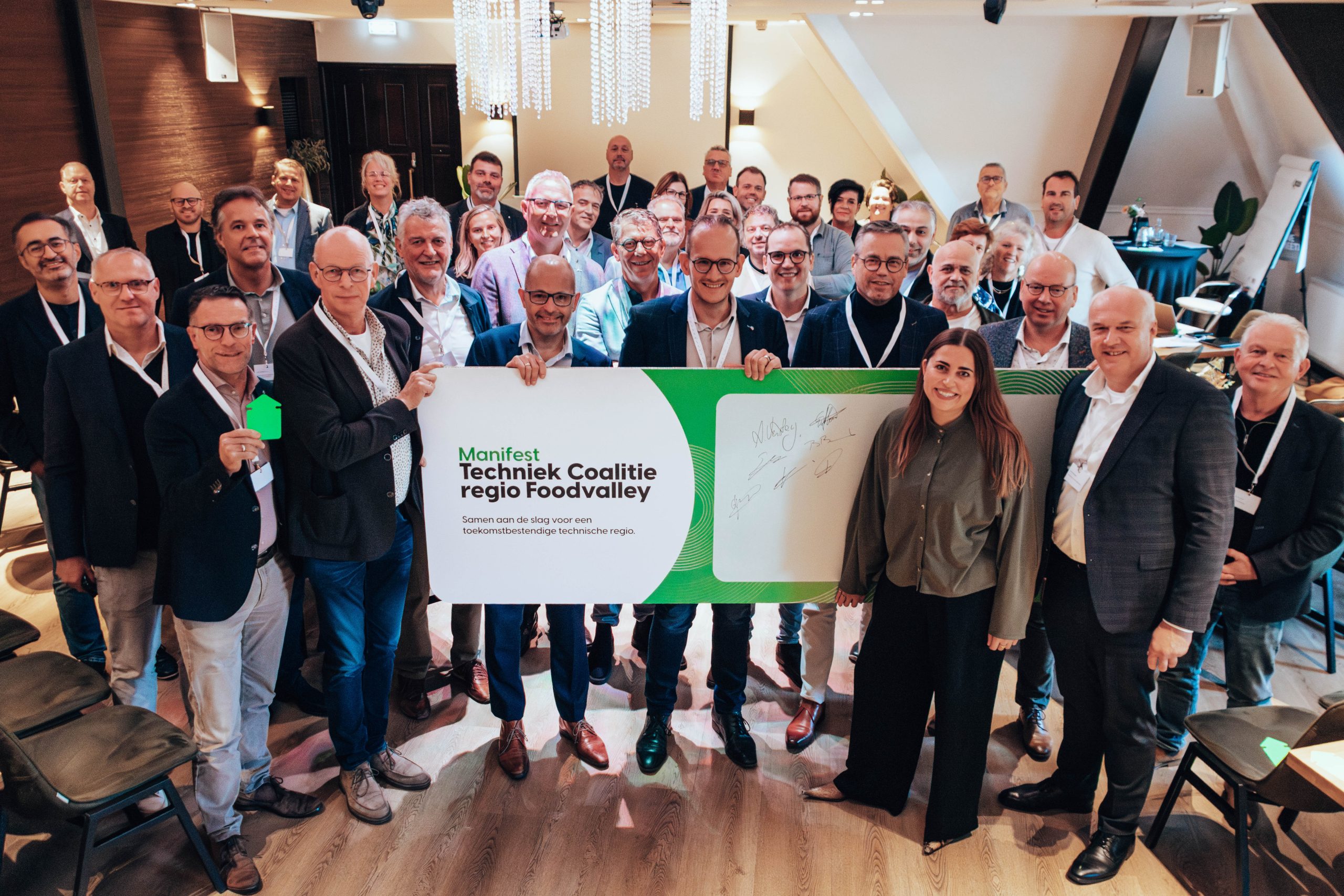 14 okt 2025“Van ik naar wij” klonk het vrijdagochtend 10 oktober tijdens de lancering van de Techniek Coalitie Regio Foodvalley. Ondernemers, onderwijs en overheid slaan de handen ineen om de uitdagingen op de technische arbeidsmarkt gezamenlijk aan te pakken. Met de ondertekening van een manifest verbinden de aanwezigen zich aan een regionale samenwerking, gericht op het aantrekken, behouden en ontwikkelen van technisch talent, nu en in de toekomst.